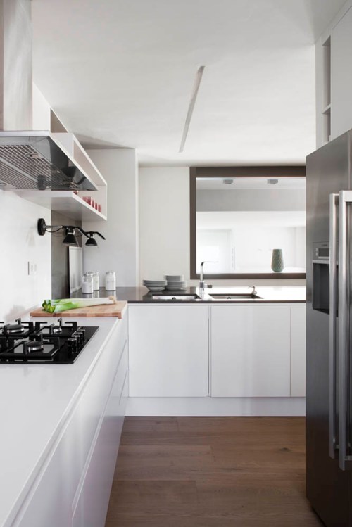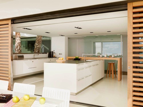 En la cocina Susanna ha diseñado un juego de simetrías interior-exterior consiguiendo que la mesa del comedor pertenezca a ambas áreas.
