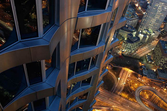 La fachada llena de ángulos y ondas crea una imagen muy dinámica de la torre y dota a las viviendas de una excepcional variedad de vistas panorámicas desde el interior de las residencias.
