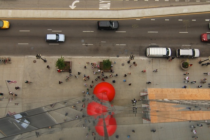 «Through the RedBall Project I utilize my opportunity as an artist to be a catalyst for new encounters within the everyday. Through the magnetic, playful, and charismatic nature of the RedBall the work is able to access the imagination embedded in all of us. On the surface, the experience seems to be about the ball itself as an object, but the true power of the project is what it can create for those who experience it. It opens a doorway to imagine what if? As RedBall travels around the world people approach me on the street with excited suggestions about where to put it in their city. In that moment the person is not a spectator but a participant in the act of imagination. I have witnessed it across continents, diverse age spans, cultures, and languages, always issuing an invitation. That invitation to engage, to collectively imagine, is the true essence of the RedBall Project. The larger arc of the project is how each city responds to that invitation and, over time, what the developing story reveals about our individual and cultural imagination.» – Kurt Perschke.