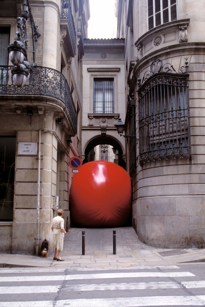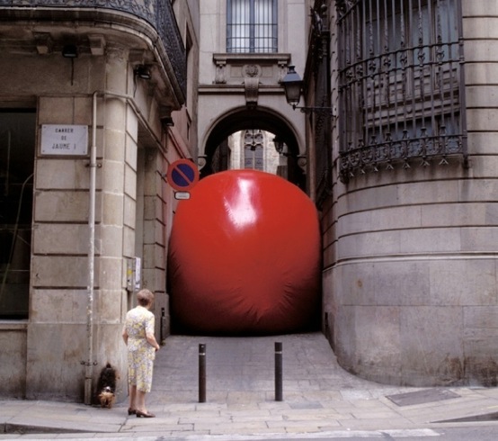 Todo comienza con una gigantesca bola hinchable de vinilo, de casi cuatro metros de altura y de un color rojo intenso. Esta bola aparece de repente una mañana en tu ciudad, incrustada entre edificios, en el arco de algún puente, en el centro de un parque… La gente no sólo puede quedarse impactada con la ocurrencia, sino que también puede lanzarse contra ella, tocarla, usarla como saco de boxeo o simplemente apoyarse contra su superficie. Esto es exactamente RedBall Project.