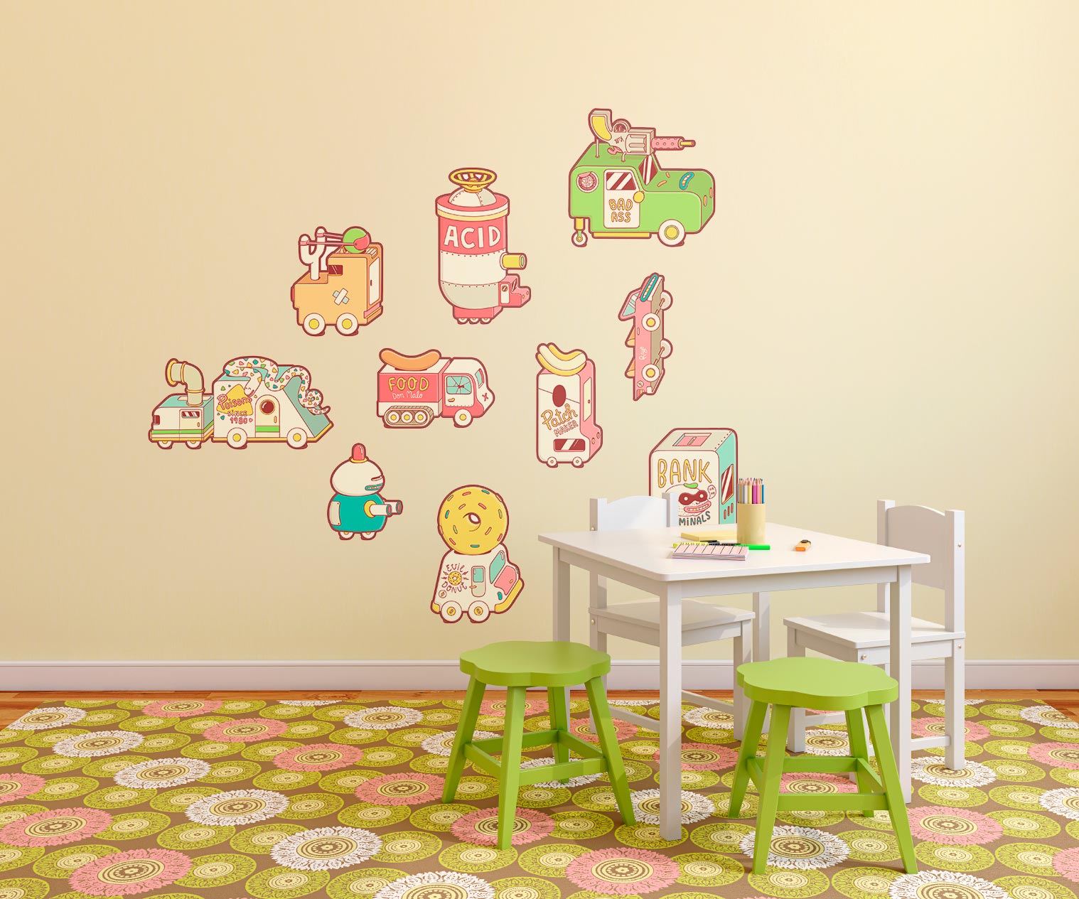 Vemos un rincón muy acogedor con pequeños vinilos adhesivos en las paredes, un perchero metálico tipo burro junto a un puf de crochet gris que me encanta, una pequeña light box (tan de moda últimamente) sobre la estantería,…
